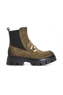 Women's suede ankle boot embellished with a horsebit and with stretch panel on the side. the insole is leather. a versatile and dynamic model ideal for completing many outfits.