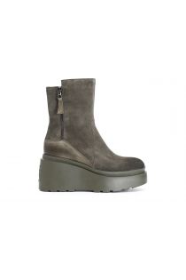 Women’s suede ankle boots with metal zips. leather insole and wedge sole customised with embossed logo on the back.