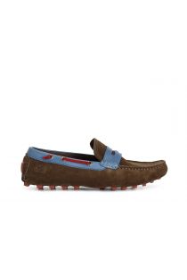 Men’s suede loafers with loop and contrasting appliqués. sole with rubber dots. lightweight and versatile footwear that can be combined with a variety of looks. it ensures a comfortable fit all day long.