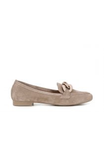 Suede moccasins with chain accessory tone on tone with the upper