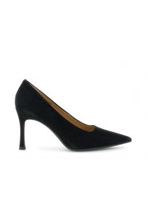 Suede pumps. fine heel 87 mm high. slim shape. lining and insole are in leather. shoe with an elegant and feminine style.