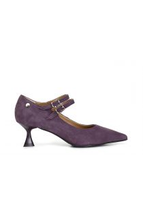 Women's suede court shoes with an elegant and feminine style. shoe enriched with two instep straps. reel heel height 65mm. soft leather insole.