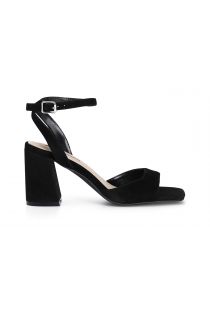 Suede sandals. the insole is in leather. shoe with a slightly square shape. 8.3 cm chunky heel.