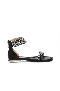 suede sandals with rhinestones at the ankle black