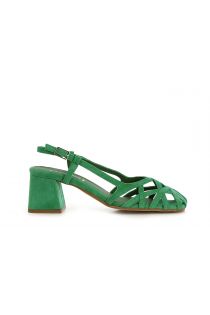 suede shoes with asymmetrical woven cage green