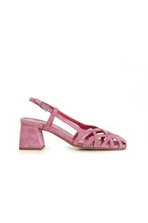 suede shoes with asymmetrical woven cage pink