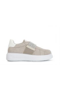 suede slip-ons with rhinestone band ecru
