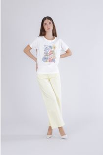 Women's crew neck t-shirt in soft and comfortable stretch cotton jersey. the multi-technique print on the front adds a creative and sophisticated touch perfect for casual-chic seasonal looks. the model is 175 cm tall and wears size s. fit: regular.