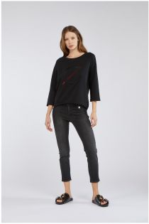 Denim leggings in super stretch canvas with embroidery on the rear pockets