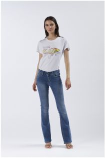 super-stretch flare denim jeans medium blue
