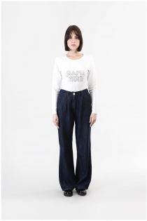 Super wide fit jeans with elasticated back waist. garment made of a soft and fluid firm denim canvas. jeans that softly accompanies your movements with a loose fit perfect as a base for creating your casual style.