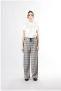 Super wide fit trousers in prince of wales stretch fabric. elastic waist in the back to increase comfort. pair with the matching jacket for an amazing look.