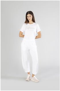 Sweatshirt trousers with front pleat made of light elastic fleece. jewel button on cuff. versatile garment that combines practicality and elegance.