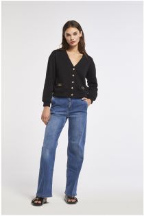 Cardigan-style sweatshirt with logo buttons and logo plates on the pockets