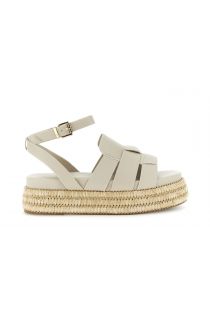synthetic leather-effect sandal with raffia band wedge beige