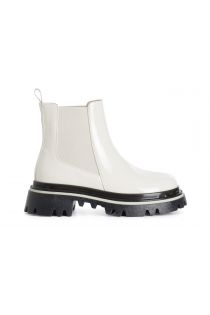Women's patent-effect ankle boot. side stretch panel to make them easier to put on. rubber sole 40 mm heel.