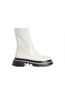 synthetic patent ankle boot with sock off white