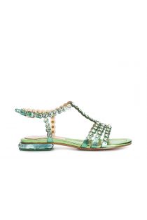 “t” sandal with rhinestones green