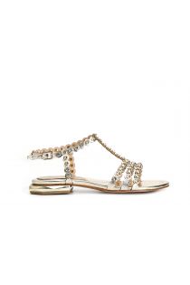 “t” sandal with rhinestones light gold