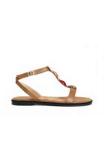 "t" sandals in leather with stones tan