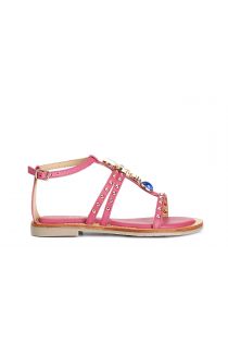 "t" sandal in nappa with studs and multicolor stones. the lining and insole are in leather. the heel is high h. 1.5 cm. comfortable shoe even after several hours of use and perfect to combine with multiple looks.