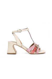 Two-tone leather and suede 't' sandals with bit. heel h. 70mm