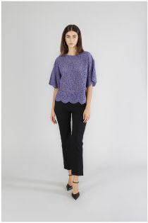 Short-sleeved t-shirt made of broderie anglaise fabric on the front and cotton jersey on the back.