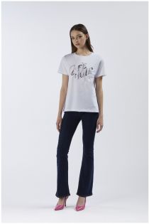 Short-sleeved t-shirt made of cotton jersey. the rich graphic made of rhinestones reproduce the cafènoir logo.