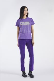 T-shirt with rhinestone decorated print in stretch cotton jersey.