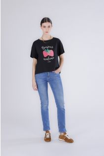 t-shirt with strawberry print black