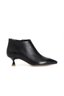 Tapered leather ankle boots with inner side zip to make them easier to put on. 45 mm-high reel heel. fashionable yet wearable everyday footwear to meet the demands of a dynamic lifestyle.