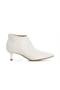 Leather ankle boots with side zip and medium heel. slight chrome detail inserted on the back.