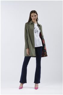 Essential item in the spring wardrobe. single-breasted duster coat made of technical fabric with printed lining. long sleeve.