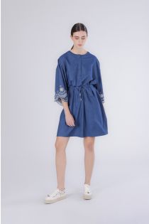 tencel denim dress with embroidery on the sleeves medium blue