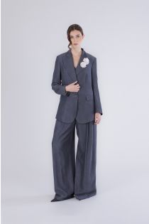 Single-breasted tencel denim jacket with an elegant flowing fit featuring a printed lining and decorative pins on the lapels. a refined and versatile piece ideal for modern and sophisticated looks. the model is 171 cm tall and wears a size s. fit: regular.