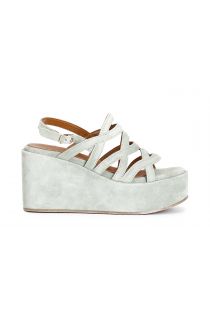 Wedge sandals in suede leather with crosses giving stable support to the foot. the insole is in leather. the wedge is 9.5 cm high. footwear that will make you feel comfortable every day. without giving up your style.
