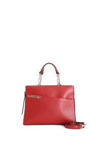 Refined tote with asymmetric pocket decorated with metal lettering. padded handles enriched with chain and practical details. removable shoulder strap for a versatile look.