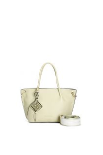 Tote bag with tubular handles in garnet material removable striped shoulder strap and metal charm with logo. practical and elegant design ideal for any occasion.