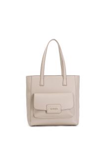 tote in grainy material and suede effect on the front dial, handle attachment taupe