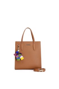 Shopper with removable coloured pendant. bag with adjustable shoulder strap. zip closure.