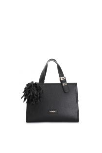 tote with large charm and fabric flower black