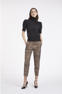 Elegant turtleneck sweater with short puff sleeves made in a mixture of warm yarns