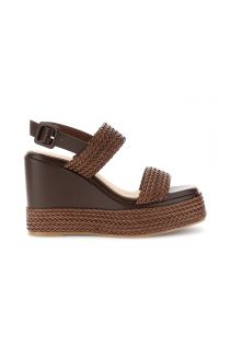 two-strap sandals on a wedge in woven synthetic leather effect dark brown
