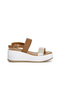 Friar model sandals with two-tone band. comfortable shoe shape. 6 cm wedge.