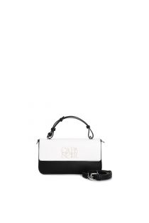 two-tone handbag with matching logo, removable shoulder strap and flap black