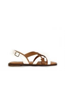 two-tone leather double-cross sandals off white combo