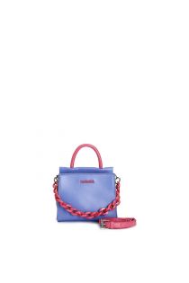 two-tone minibag with handle, double pocket, decorative chain and shoulder strap indaco