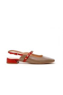 Two-tone ballet flats in nappa and patent leather open at the back with a strap embellished with conical studs. Padded insole embedded in the bally heel, also covered in leather.