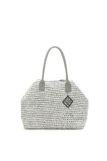 Two-tone paper crochet tote bag large volume that can be carried in two ways (internal drawstring).