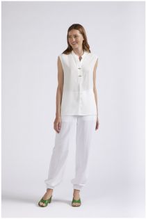 Sleeveless blouse with v neckline with buttoning detail at the top. made of viscose.